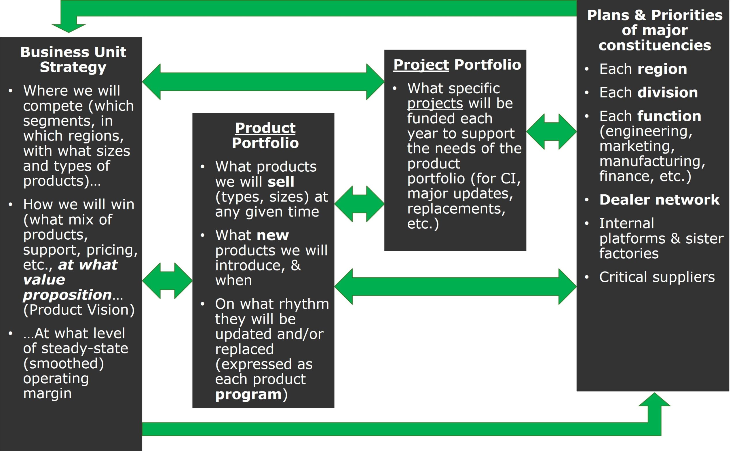 A F100 global OEM needed to align their product roadmaps across their ag equipment groups to ensure that products were brought to market in time to deliver full cropping solutions. Because each product group was selecting the projects that were highest priority for them individually, there were gaps in the full cropping solution for some crops and regions — which was hurting sales and thwarting the corporate goal of outfitting farmers with full suites of products for each crop.